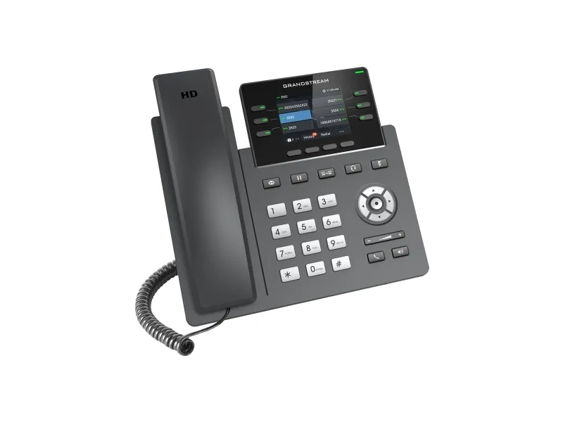 Grandstream Networks GRP2613W. Product type: IP Phone, Product colour: Black, Handset type: Wired handset. Dual-Tone Multi-Frequency (DTMF) modes: In-band, Out-of band, SIP info. Lines quantity: 4 lines, Phonebook capacity: 2000 entries. Volume control: Buttons. Display: TFT, Display diagonal: 6.1 cm (2.4"), Display resolution: 320 x 240 pixels