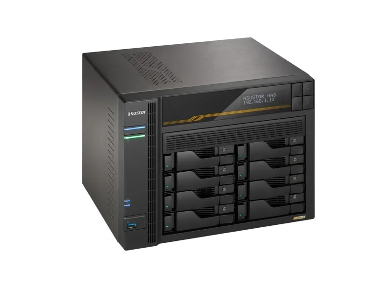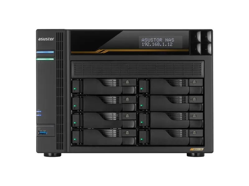 ASUSTOR Lockerstor 8 Gen3 är utformad för att möta de höga kraven som ställs på moderna lagringslösningar. Med kapacitet att stödja upp till 8 enheter erbjuder denna NAS-server prestanda genom olika datalänkprotokoll, inklusive 10 Gigabit Ethernet, och stödjer både RAID- och iSCSI-konfigurationer. Med en fyrkärnig AMD Ryzen-processor med en klockhastighet på 2,3 GHz garanterar denna enhet effektiv datahantering och smidig multitasking mellan olika applikationer. Lockerstor är utrustad med funktioner som automatiskt viloläge, fläktfunktion och hårdvarukryptering, vilket håller data säkra och minskar strömförbrukningen. Det omfattande utbudet av anslutningsmöjligheter, inklusive flera Ethernet- och USB-portar, möjliggör mångsidig integration i ditt befintliga nätverk. Dessutom säkerställer dess ljudemission på endast 22 dB tyst drift, vilket gör den lämplig för en rad olika miljöer, från hemmakontor till serverrum.