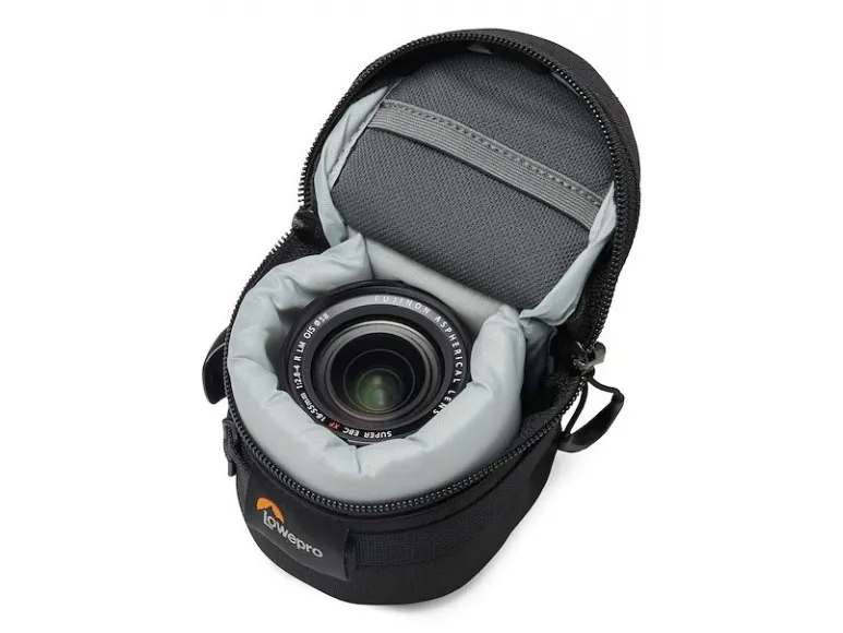Premium padded lens case with adaptive compression to fit lens up to 8cm diameter & 8cm long. Use alone or attach to any SlipLock compatible bag or belt