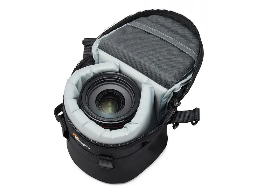 Premium padded lens case with adaptive compression to fit lens up to 11cm diameter & 15cm long. Use alone or attach to any SlipLock compatible bag or belt
