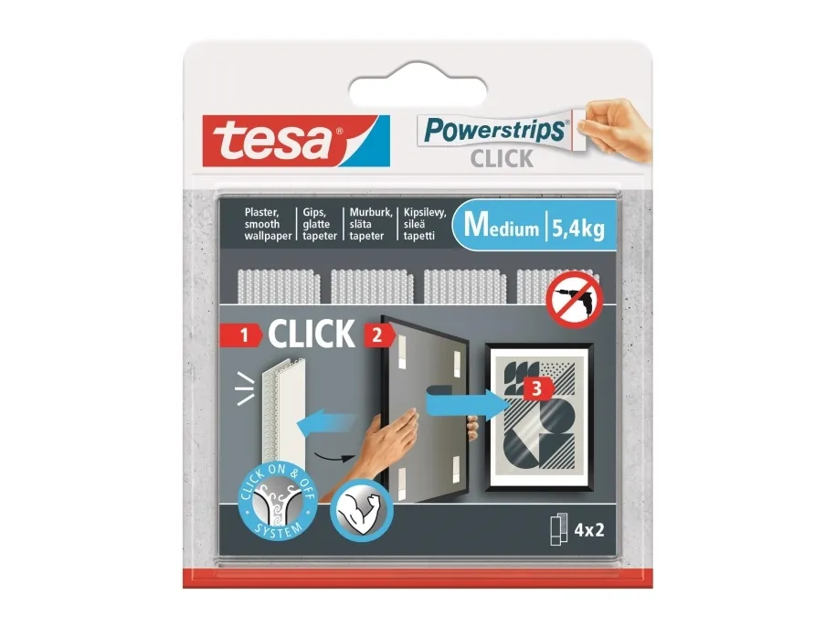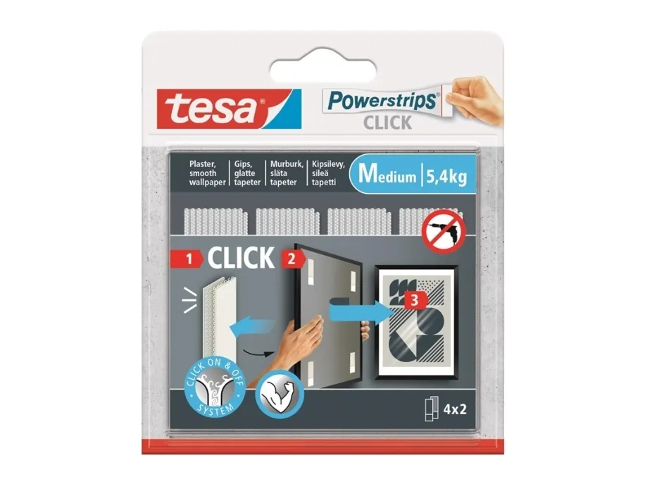 Brand- Tesa. Model- Power-Strips 77721. Article- 77721. For finishing works- Indoor. Length- 0.08 m. Width- 20 mm. Adhesive tape type- Two-sided. Reinforced- No. Moisture resistant- Yes. Maximum operating temperature- 40 °C.