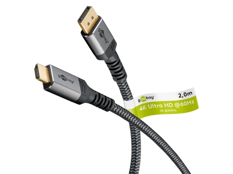 Goobay 65269, 2 m, DisplayPort, HDMI, Hankoppling, Hankoppling, Grå