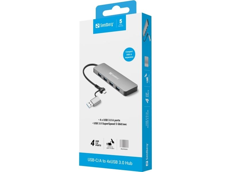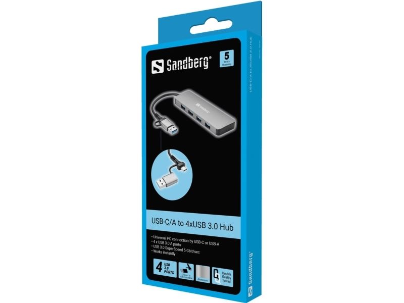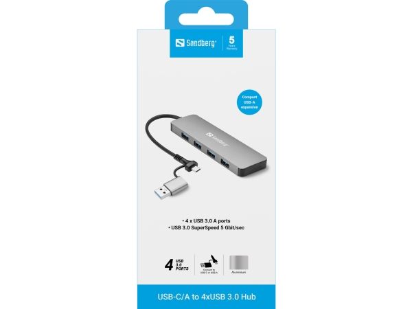 Sandberg - Hubb - USB-C/A - 4 x SuperSpeed USB 3.0 - skrivbordsmodell