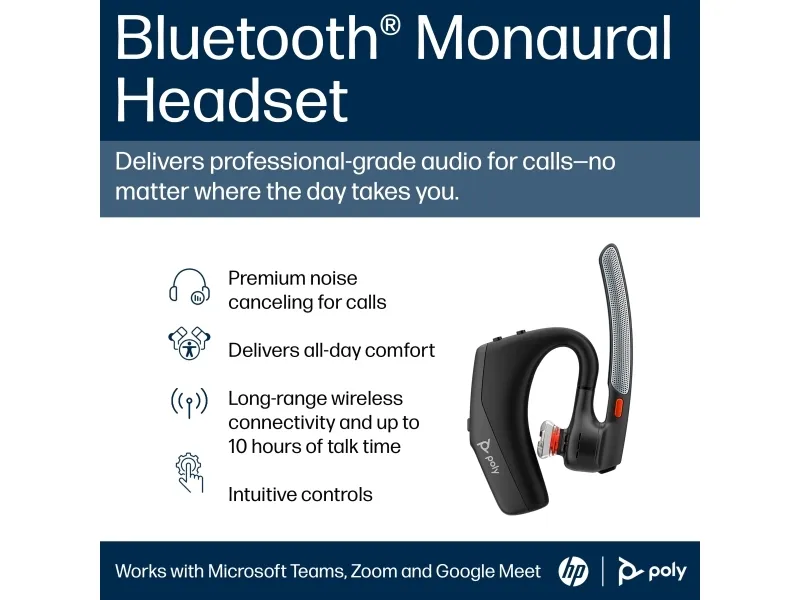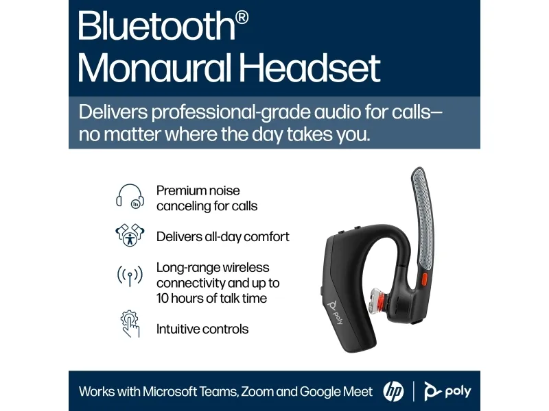 HP Poly Voyager Legend 30 är utformat för smidig kommunikation och tydlig ljudprestanda. Detta headset är utrustat med en bom-mikrofon med WindSmart-teknik som effektivt reducerar bakgrundsljud, vilket möjliggör tydliga samtal i olika miljöer. Med ett frekvensomfång på 100–8000 Hz och ett signal-brusförhållande på 68 dB ger headsetet en fantastisk ljudupplevelse för samtal eller musik. Det ansluts trådlöst via Bluetooth 5.4 och har en räckvidd på upp till 30 meter. Den monaurala in-ear-designen garanterar komfort, medan Smart Sensor Technology möjliggör intuitiva kontroller som att svara på samtal, justera volymen och komma åt röstassistenten. Med SoundGuard Technology som skyddar mot ljudspikar tillgodoser HP Poly Voyager Legend 30 både produktivitet och komfort för användare på resande fot.