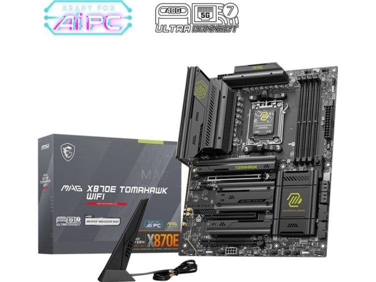 Msi X870 Tomahawk wifi title MAG X870E TOMAHAWK WIFI is designed for gamers with a stable, durable and DIY friendly foundation for their PC builds. Coming up with true Wi-Fi 7 solution, 5G LAN, USB 40Gbps, PCIe 5.0 solutions, Supplemental PCIe Power, and exclusive EZ DIY features, it's ready for the battlefield of AMD Ryzen™ 9000 series processors.