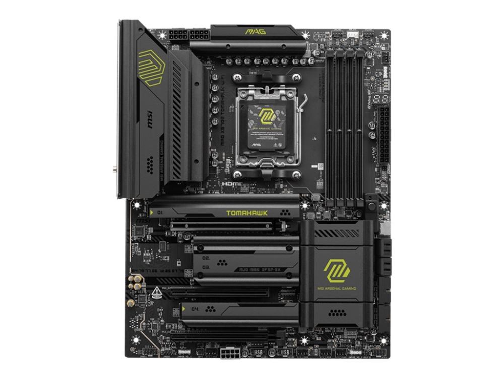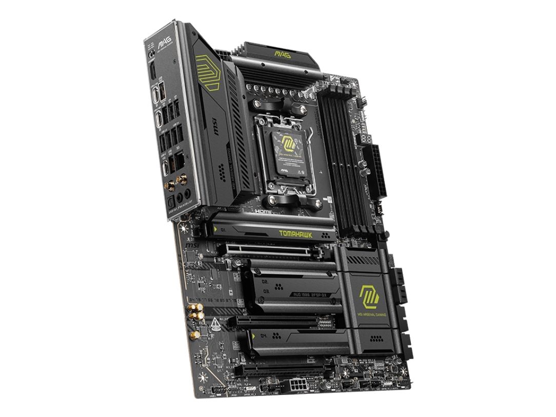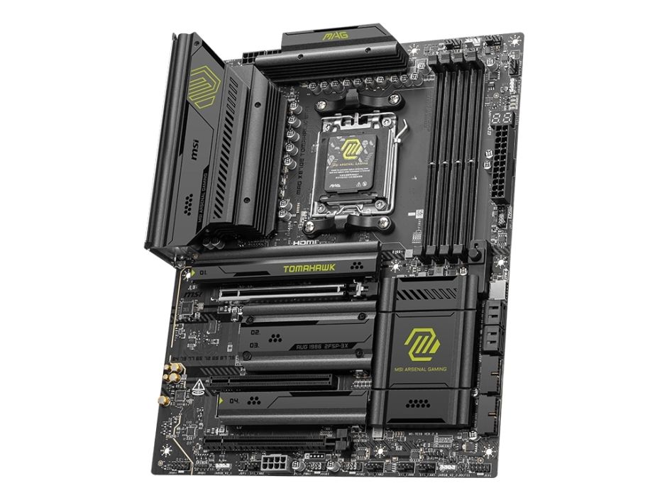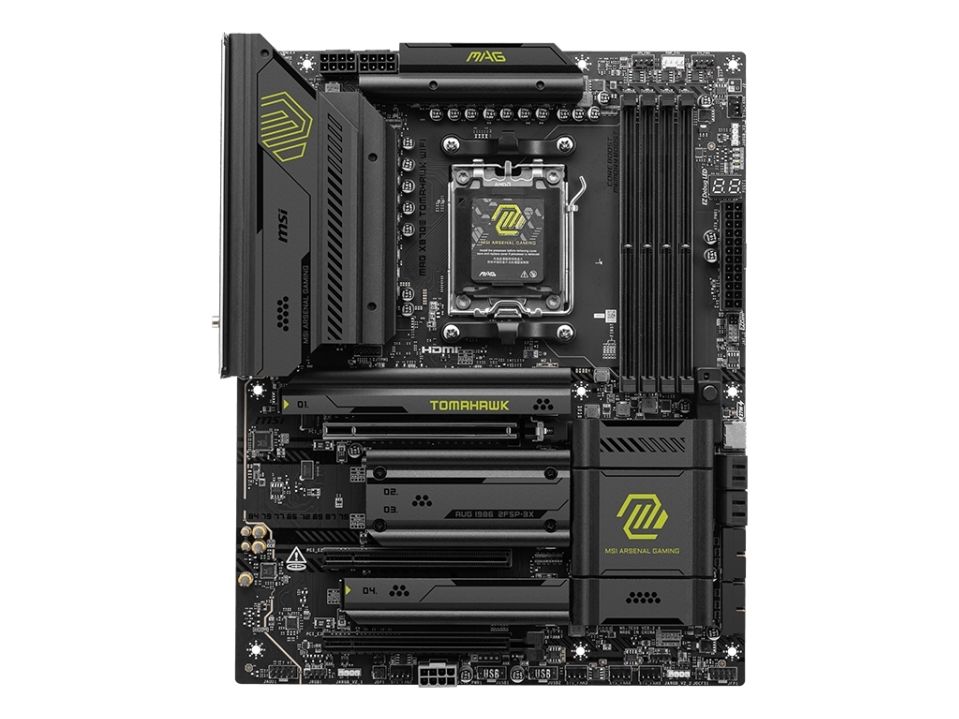 MAG msi arsenal gaming MSI's mainstream MAG series epitomizes stability and durability and is built to withstand the most intense gaming sessions. The entire lineup features robust construction with metallic-like hardness and excellent heat dissipation, ensuring stability for all critical gaming components.MSI MAG X870E TOMAHAWK WIFI. Processor manufacturer: AMD, Processor socket: Socket AM5, Compatible processor series: AMD Ryzen 7000 Series, AMD Ryzen 8000 Series, AMD Ryzen 9000 Series. Supported memory types: DDR5-SDRAM, Maximum internal memory: 256 GB, Memory slots type: DIMM. Supported storage drive interfaces: M.2, SATA III, Supported storage drive types: HDD & SSD. Ethernet interface type: 5 Gigabit Ethernet, LAN controller: Realtek RTL8126, Top Wi-Fi standard: Wi-Fi 7 (802.11be). Component for: PC, Motherboard form factor: ATX, Motherboard chipset family: AMD