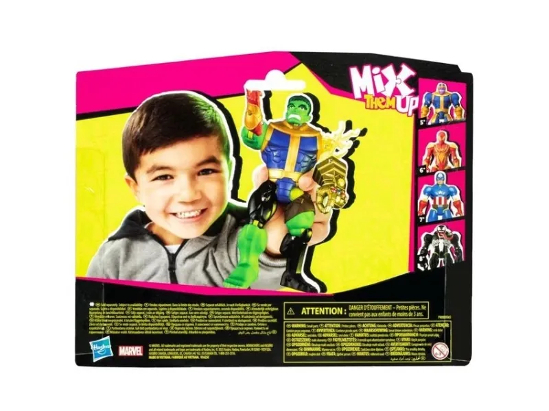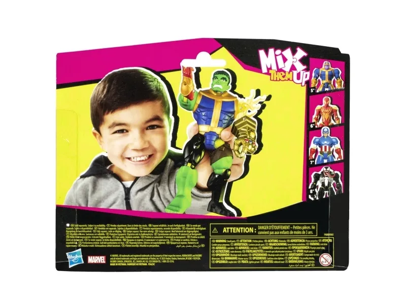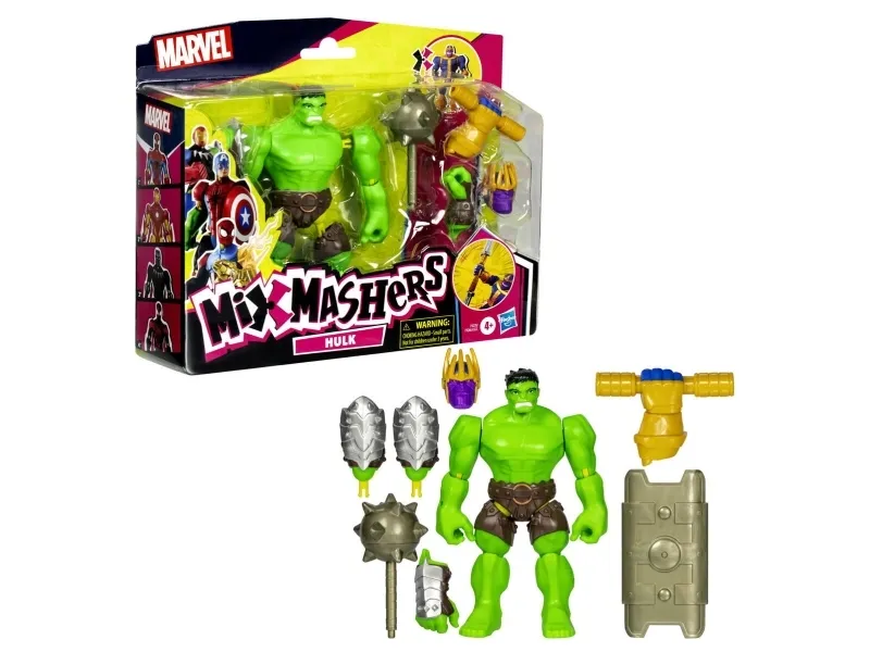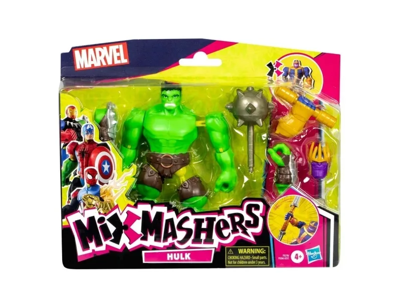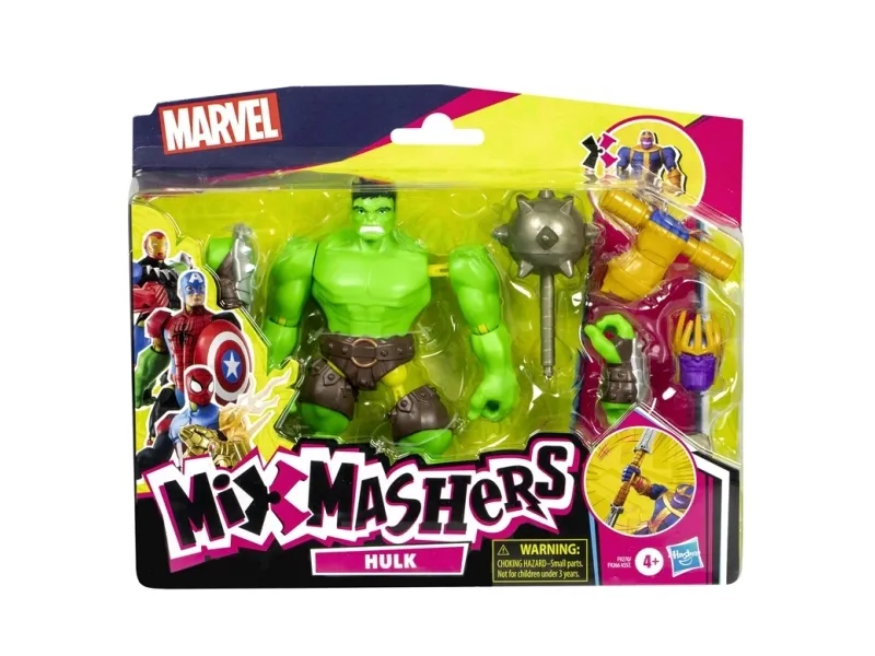 Till och med de mäktigaste superhjältarna behöver ibland en hjälpande hand … fot, knytnäve eller ett tillbehör! MixMashers Marvel deluxe-actionfigurerna är samlarobjekt med delar som kan tas isär, blandas och sättas ihop till helt nya, unika figurer. De hållbara MixMashers-leksakerna på 12 cm har 16 fästpunkter och universalkopplingar som kan kombineras i hela utbudet. Sugen på en massa fler superkrafter? Bygg figurer med maximal superkraft genom att samla på deluxe-actionfigurernas tillbehör och delar som ger extrakrafter! Håll utkik efter fler MixMashers-leksakerna för barn att samla på eller ge bort i present på födelsedagar och högtider! (Säljs separat, i mån av tillgång.) Copyright MARVEL. Alla varumärken och registrerade varumärken tillhör respektive ägare. HASBRO och alla relaterade varumärken och logotyper är varumärken som tillhör Hasbro, Inc.