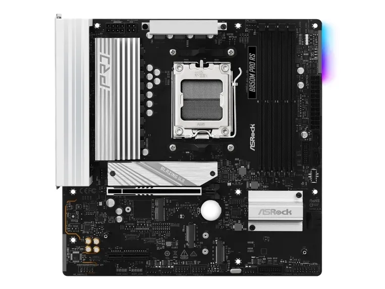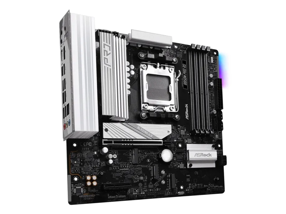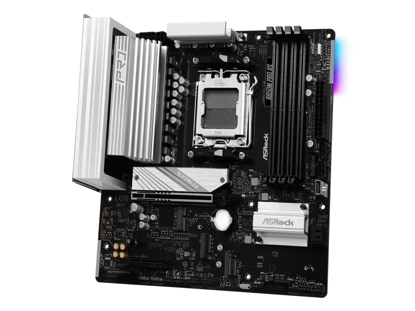 Featuring a range of storage interface options, including four SATA-600 ports and multiple M.2 sockets, it ensures fast data transfer rates and the ability to set up various RAID configurations. The motherboard is designed for gamers and professionals alike, equipped with a 2.5 Gigabit Ethernet port for high-speed networking, alongside HDMI and DisplayPort outputs for superior video quality. The ASRock B850M PRO RS is a foundation for a powerful system.