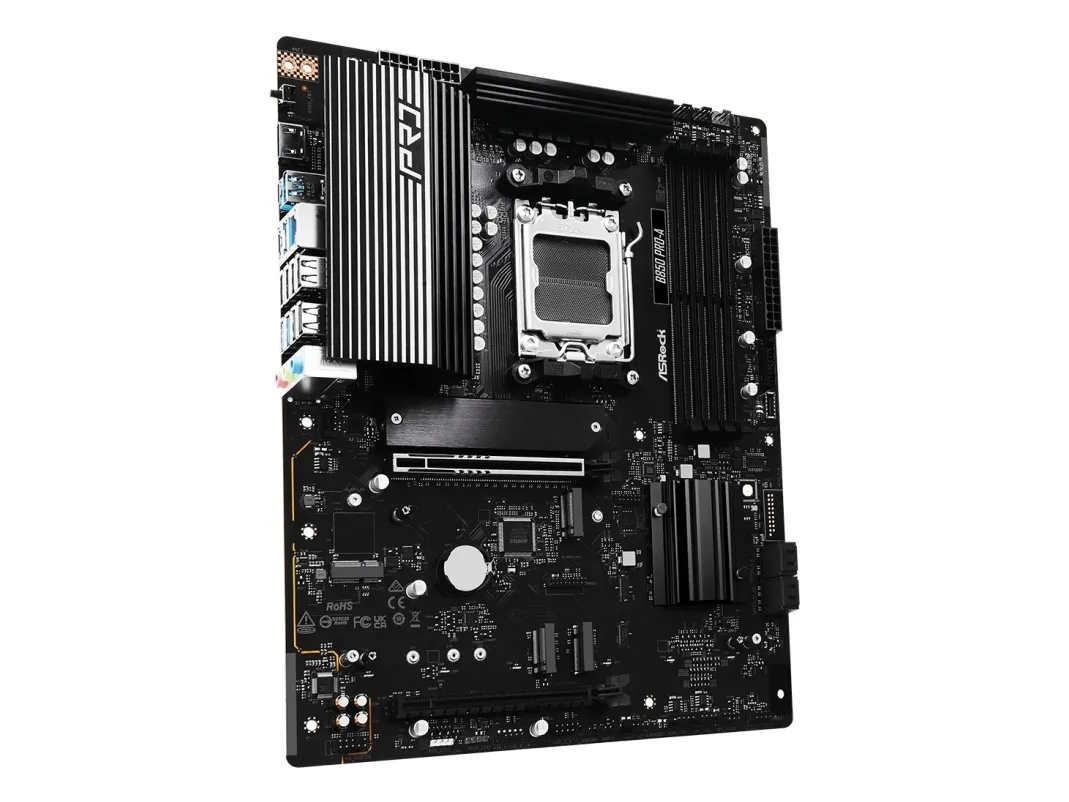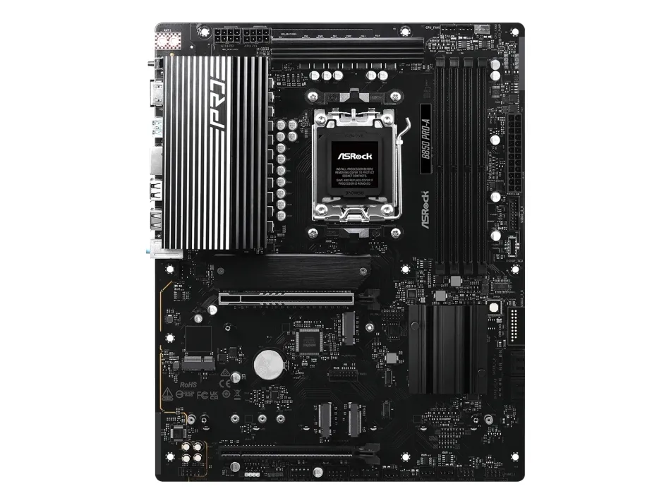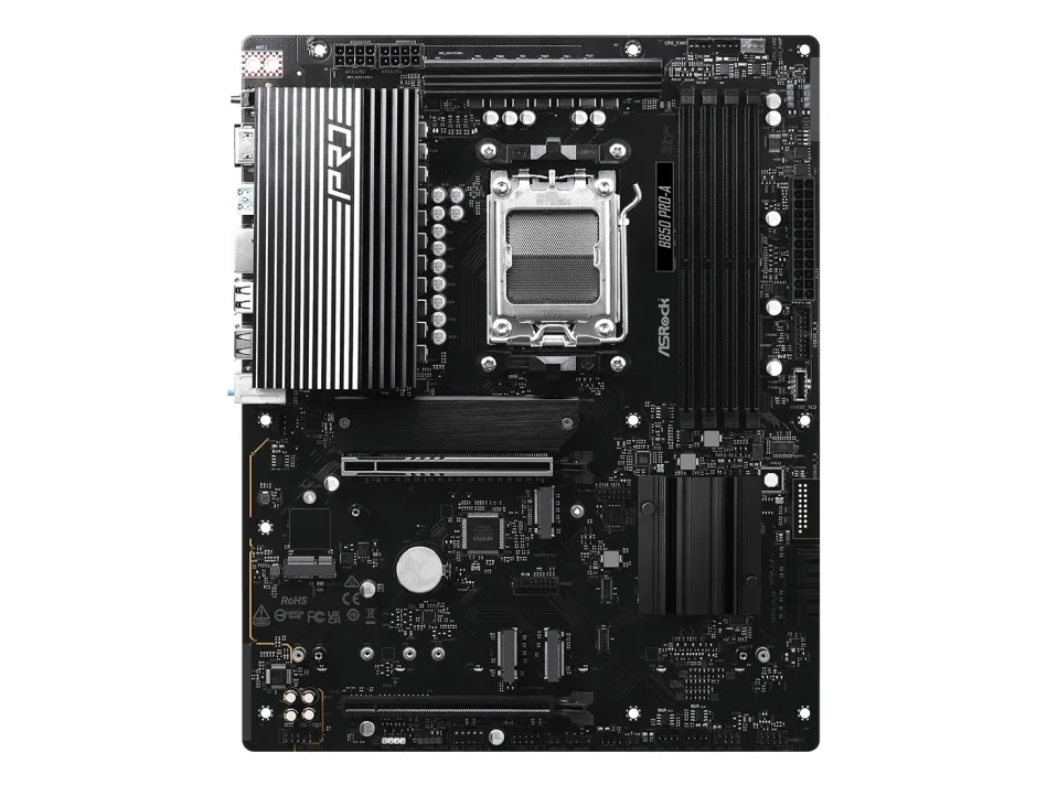 BIOS Flashback Get the most convenient BIOS flashing with just a simple click. Users can easily achieve the latest BIOS support with a USB and a power supply. No CPU, RAM or other components are required.Asrock B850 Pro-A. Processor manufacturer: AMD, Processor socket: Socket AM5, Compatible processor series: AMD Ryzen 7000 Series, AMD Ryzen 8000 Series, AMD Ryzen 9000 Series. Supported memory types: DDR5-SDRAM, Maximum internal memory: 256 GB, Memory slots type: DIMM. Supported storage drive interfaces: PCI Express 3.0, PCI Express 4.0, PCI Express 5.0, SATA III, Supported storage drive types: HDD & SSD, RAID levels: 0, 1, 10. Maximum resolution: 3840 x 2160 pixels. USB connector type: USB Type-A, USB Type-C