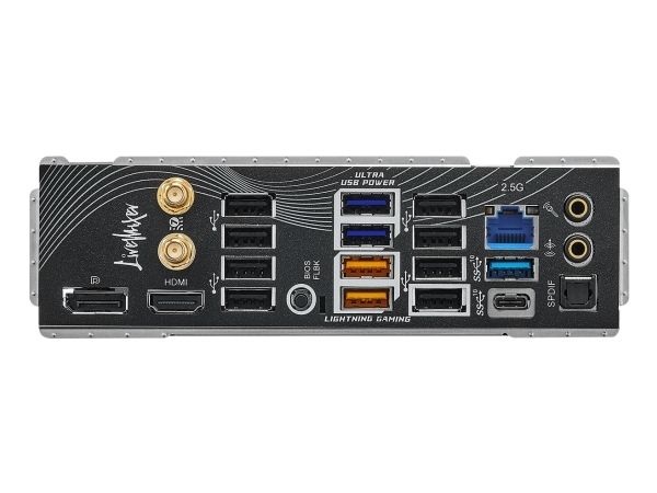1 x HDMI 2 x antenn 1 x USB-C 3.2 Gen 2 1 x USB 3.2 Gen 2 4 x USB 3.2 Gen 1 8 x USB 2.0 1 x ljudutgång - mini-jack 1 x mikrofon - mini-jack 1 x LAN (2.5Gigabit Ethernet) 1 x DisplayPort 1 x SPDIF-utgång