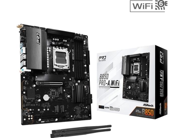 The ASRock B850 Pro-A WiFi motherboard offers a solid foundation for building powerful desktop systems. With support for AMD Ryzen 7000/8000/9000 Series processors and DDR5 SDRAM with speeds of up to 4000 MHz (O.C.), this motherboard delivers performance tailored for modern workloads. The UEFI BIOS enhances system management, while ASRock's Instant Flash and Auto Driver Installer features simplify setup and configuration.
