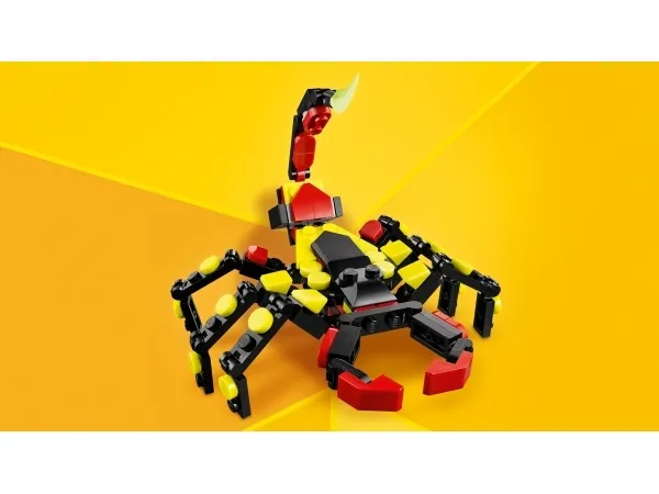 Fans av coola djur får 3 olika byggalternativ med samma klossar: en rörlig LEGO leksaksspindel med ett utdragbart snöre, en rörlig skorpionfigur eller en majestätisk rörlig leksaksorm. Alla 3 djurfigurerna i detta ändringsbara lekset är kreativa och roliga presenter till barn.