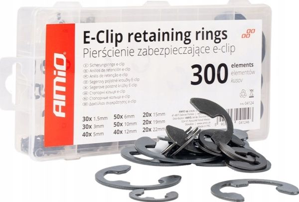 Cirkelsprintar/säkringsringar e-clip för invändig montering 300 st. amio-04124