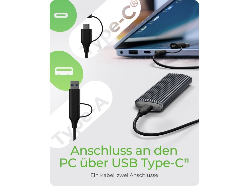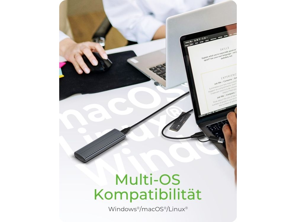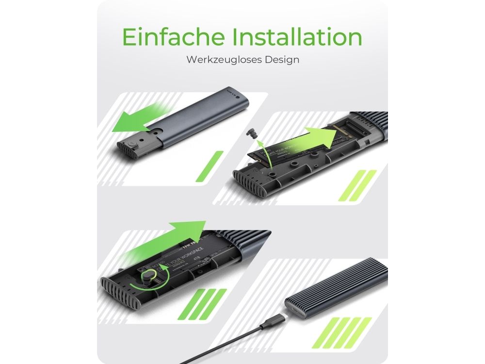 ICY BOX IB-1808MCT-CU31, SSD-inkapsling, M.2, PCI Express 3.0, Serial ATA III, 10 Gbit/s, USB-anslutning, Svart