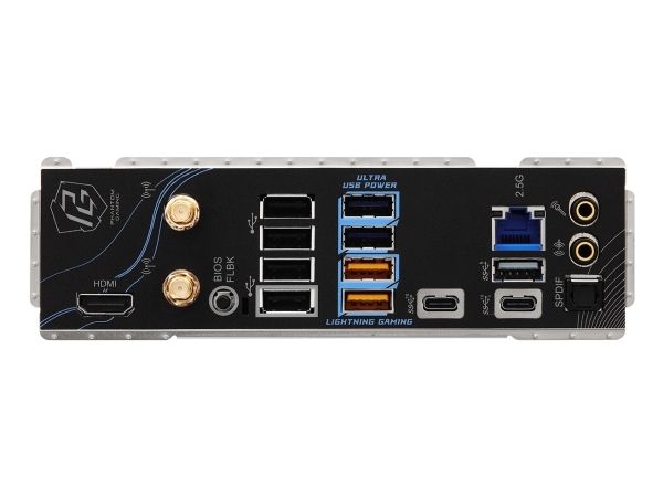 1 x HDMI 2 x antenn 1 x SPDIF-utgång 2 x USB-C 3.2 Gen 2 2 x USB 3.2 Gen 2 3 x USB 3.2 Gen 1 1 x ljudutgång - mini-jack 1 x mikrofon - mini-jack 1 x LAN (2.5Gigabit Ethernet) 4 x USB 2.0