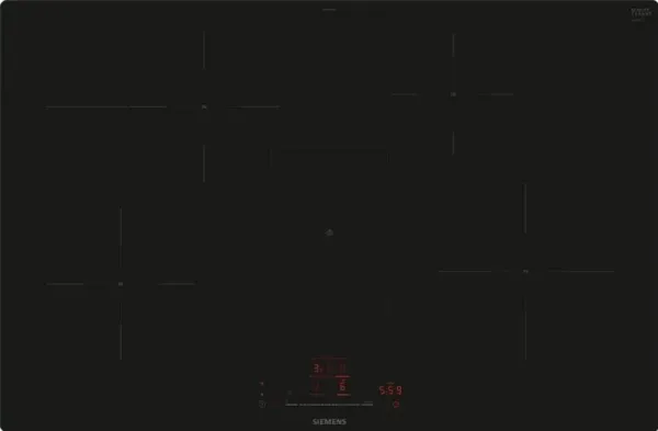 Siemens iQ300 EH801HFB1E. Product colour: Black, Appliance placement: Built-in, Hob width size: 80 cm. Control type: Touch, Control position: Top front, Clock type: Electronic. Connected load (electric): 7400 W, AC input voltage: 220 - 240 V, AC input frequency: 50/60 Hz. Width: 792 mm, Depth: 512 mm, Height: 56 mm. Package width: 950 mm, Package depth: 600 mm, Package height: 130 mm