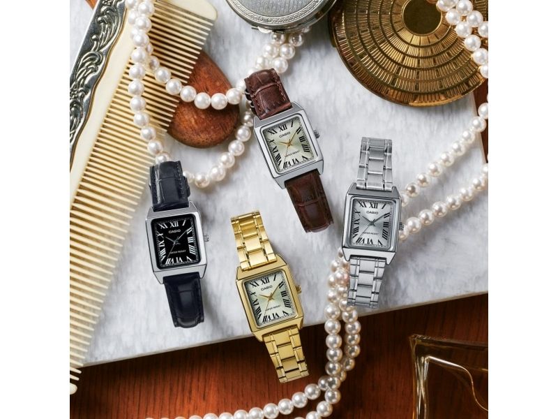 Casio LTP-V007L-9B, Läder, Mineralglas, SR626SW, 3 År, 31 mm, 22 mm