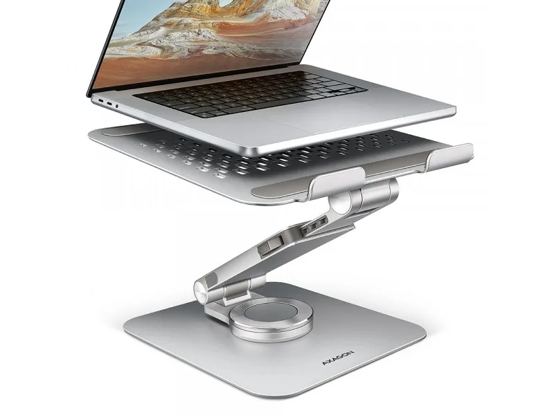 AXAGON STND-LR-bärbar datorstativ erbjuder en effektiv lösning för att höja bärbara datorer till en bekväm visningshöjd. Stativet är tillverkat av hållbart metall, vilket garanterar stabilitet och kan bära enheter som väger upp till 5 kg. Med justerbara höjdinställningar upp till 26 cm kan användare enkelt anpassa sin arbetsplats för att förbättra hållningen och minska belastningen under långa arbets- eller studietimmar. STND-LR är utformat för mångsidighet och har 360° rotation och 180° lutning, vilket gör att användarna kan placera sin bärbara dator på olika sätt för optimal komfort. Den hopfällbara designen gör den bärbar och perfekt för dem som behöver ett pålitligt tillbehör när de är på resande fot. Detta stativ är kompatibelt med en rad olika bärbara datorer från 10 till 17 tum och är ett idealiskt val för olika användare som söker funktionalitet och användarvänlighet.