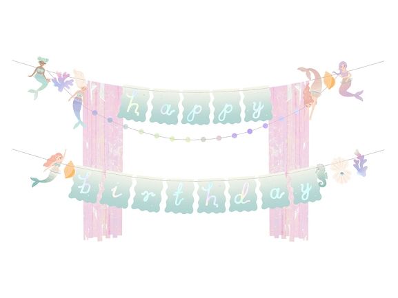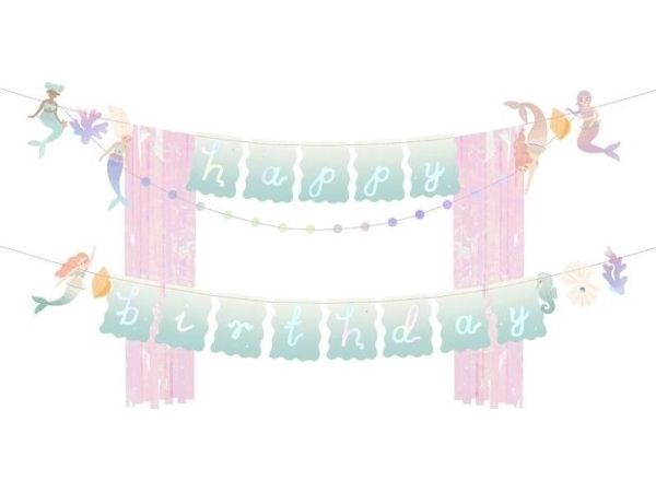 Happy Birthday sjöjungfru-banner 130x100 cm