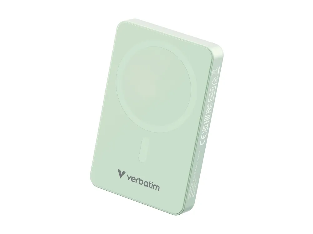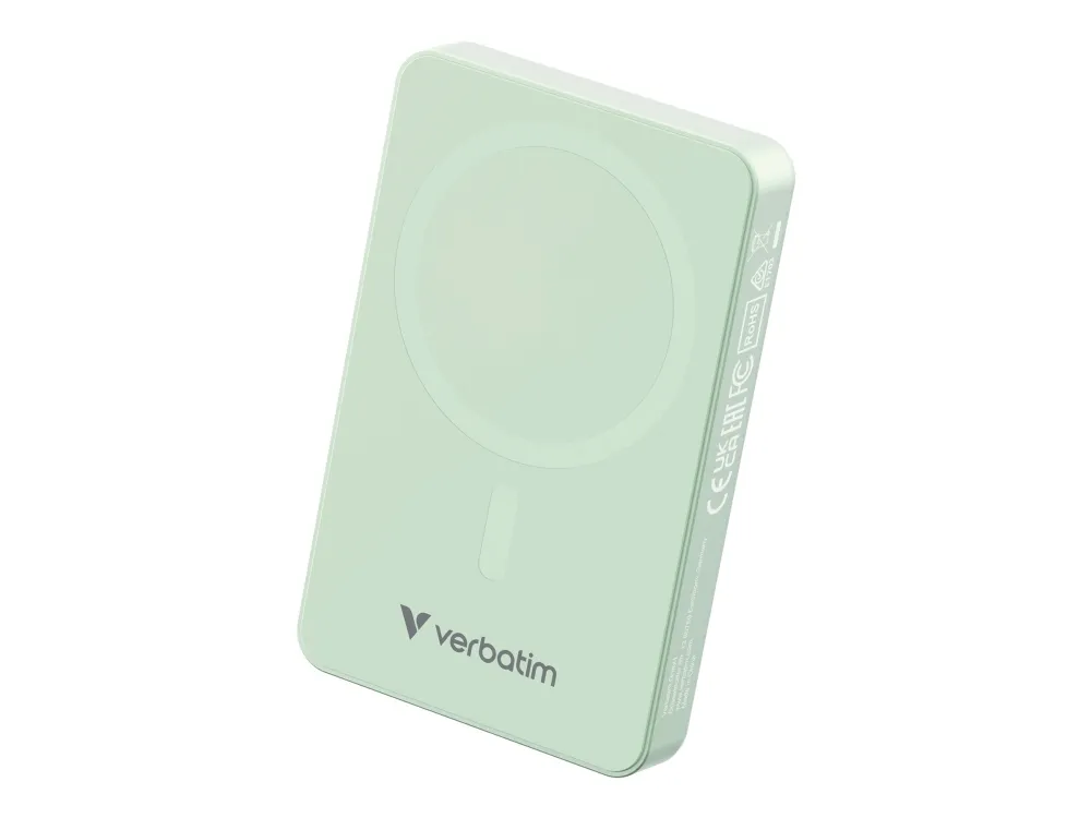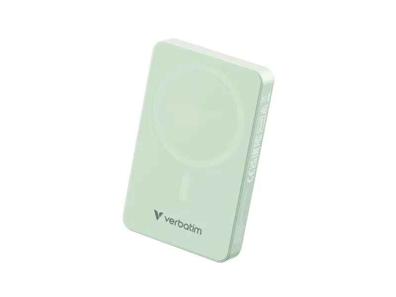 Verbatim Charge 'n' Go Essentials - Trådlös powerbank - magnetisk - 10000 mAh - 20 Watt - 3 A - PD 3.0, QC 3.0, Apple 2.4A, USB BC 1.2, Apple Fast Charge (USB-C) - grön