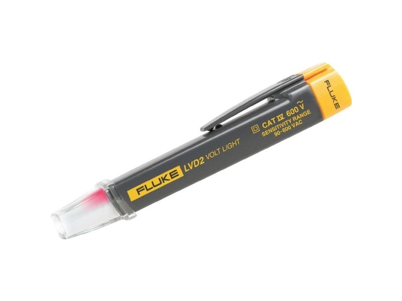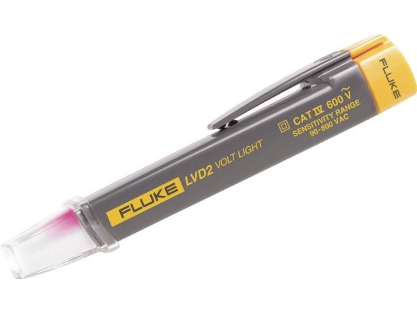 Non-contact AC voltage detector and LED flashlight combined into one easy to use pen-style design. The LVD2 is a CAT IV 600 V rated non-contact detector that is suitable for commercial and industrial applications. The LVD2 includes dual sensitivity turning blue 1 to 5 (2.54 cm to 12.7 cm) from the source and red when at the source.