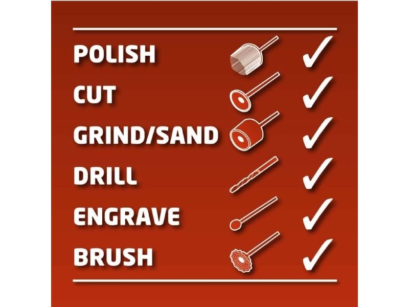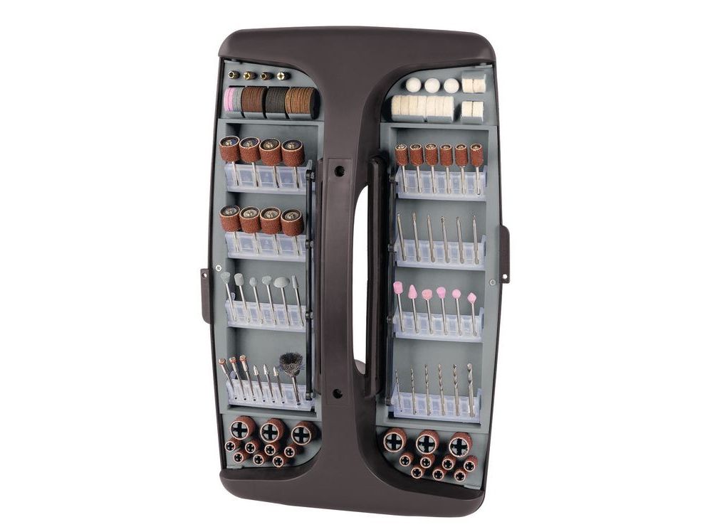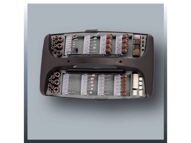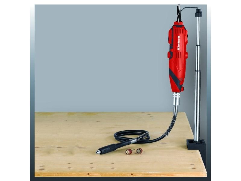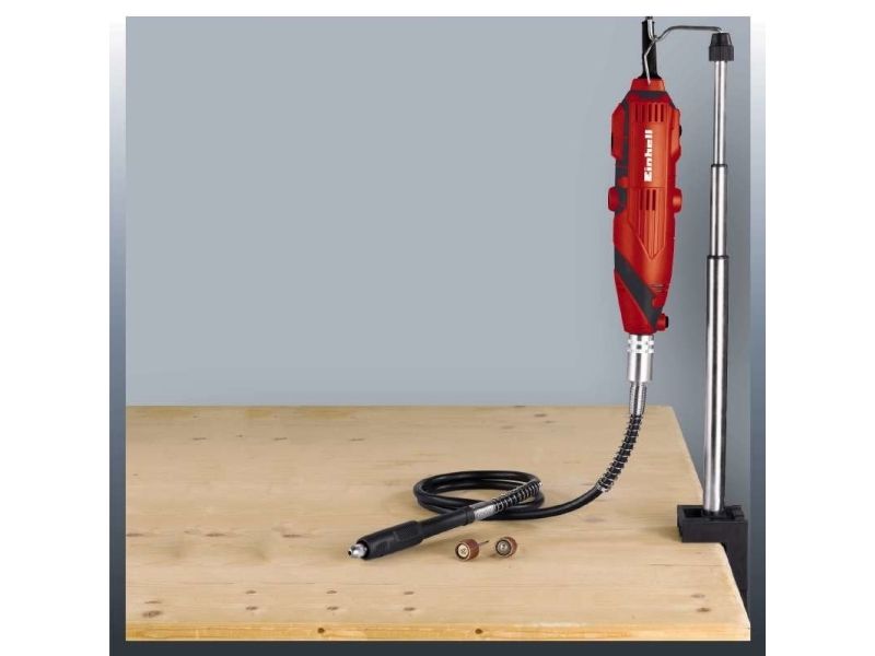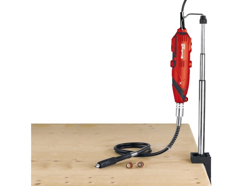 The TC-MG 135 E grinding and engraving tool is a high quality, compact machine which is suitable for an enormous number of different applications for drilling, cutting, grinding and brushing thanks to its extensive range of accessories. The spindle lock enables you to remove the various attachments quickly and change them easily. Electronic speed control ensures smooth starting and enables the power to be adjusted exactly to the particular task. The TC-MG 135 E features a flexible shaft with which various areas of the workpiece can be machined skillfully and easily. During use, the tool can also be conveniently mounted on the the telescopic stand and related hook. The machine is easy to hold thanks to its soft grip and ergonomic design. The extensive 189-piece accessory set for grinding, drilling, cutting and much more is also included in the package - with everything stored practically in a case.