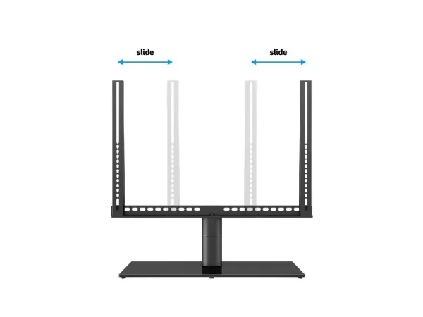 Perfectly placed on a table or media furniture, it has a sophisticated built in left and right turn feature inside its tubular pillar. The M VESA Tablestand turns your TV screen up to 30 degrees, left or right. This allows you to watch your TV in an optimal angle from your TV sofa, kitchen, favorite comfy chair or anywhere else the turned reaches its viewing angle. The M VESA Tablestand Turn optimizes your TV angle, it makes the most out of your living room setting and can create a smooth functionality for your home or office environment.