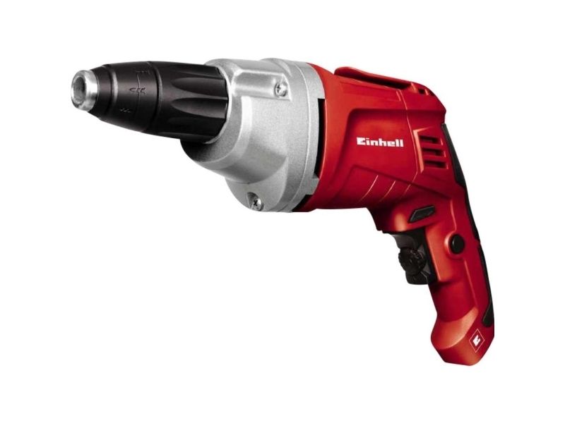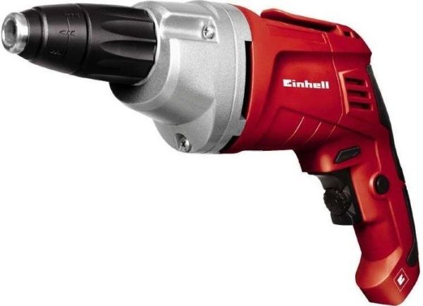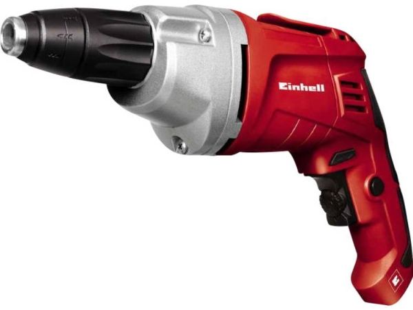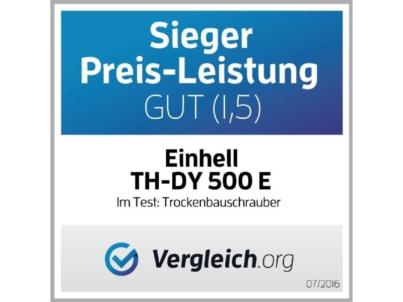 The TH-DY 500 E drywall screw gun is a light weight and powerful tool for ambitious DIY fans, which promises user-friendliness and time savings when fitting plasterboard and particleboard. Thanks to automatic start-stop gearing, the spindle does not rotate until the screw is positioned and will stop automatically as soon as the screw sits flush. Speed control electronics with a speed pre-selector and a reversing facility are further quality features. The robust metal gear head of the TH-DY 500 E ensures durability even in demanding service. The drywall screw gun comes with a ¼" (6.35 mm) hexagon tool chuck. An infinitely variable depth stop guarantees a constant screwing depth. A locking button is available to set the tool for continuous operation, which together with the automatic start-stop gearing makes for fast progress on projects requiring a lot of screwdriving. The handy belt hook a the magnetic bit mounting make the tool complete.