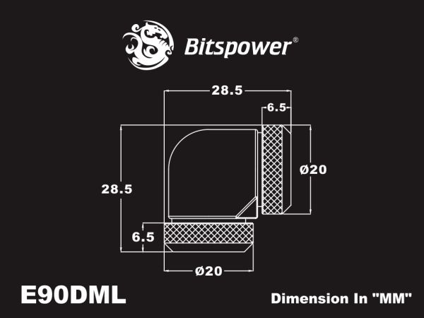 Bitspower Carbon Black, Kompressionskrök, mässing, Svart, Kol, 90°, RoHS, 1 styck