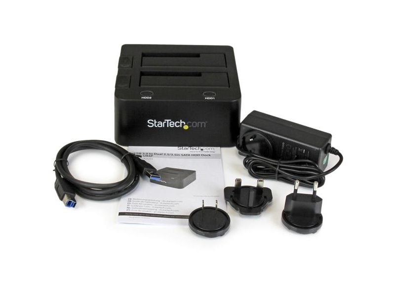 StarTech.com Dockingstation för USB 3.0 till SATA-hårddiskar med dubbla fack, USB-hårddiskdockning, extern 2.53.5 SATA IIIIII, SSDHDD-dockingstation, hot-swap-hårddiskfack - toppladdning - Lagringskontroll - 2,5", 3,5" - SATA 6Gb/s - USB 3.0 - sortering - för P/N: SVA12M5NA