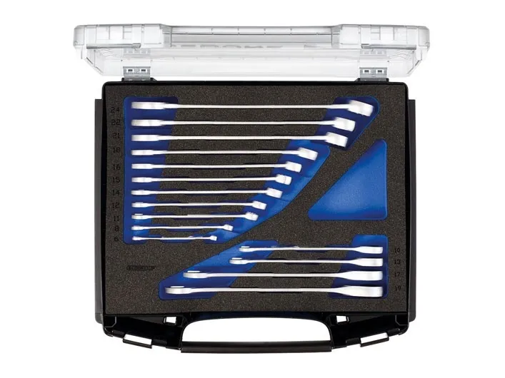 Often used sizes as practical combination ratchet spanner. In Gedore i-BOXX® 72 No. 1101 L. Dimensions: W 367 x D 316 x H 72 mm.