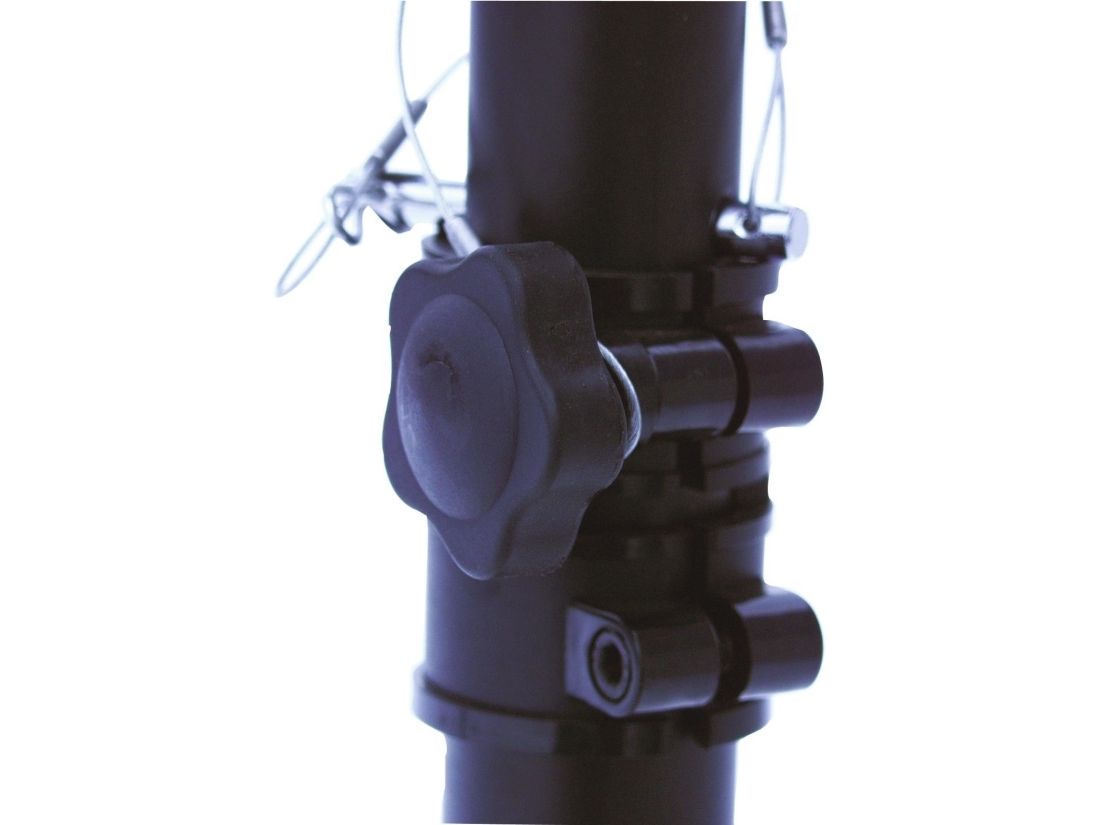 Stable lighting stand for mobile use The telescopic tube is additionally fixed with a safety pin With crossbeam for up to 4 spots For TV-pins up to Ø 17 mm