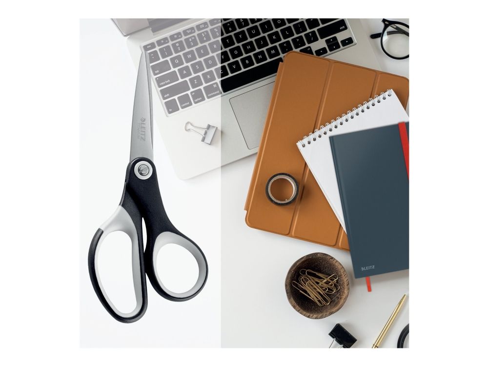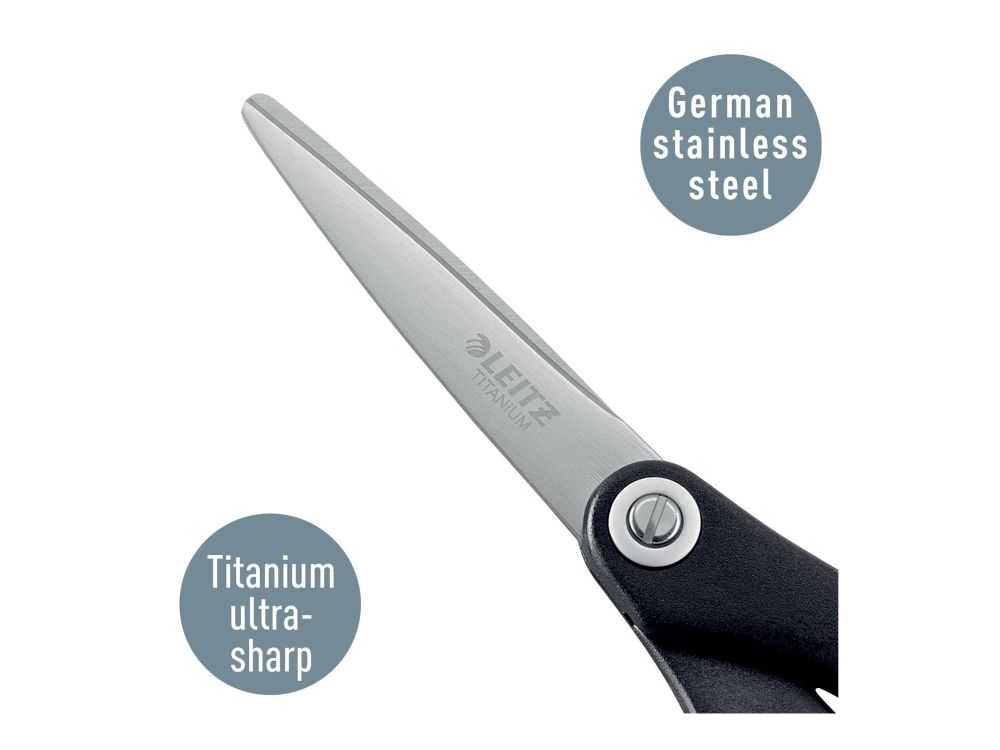 Discover the precision and comfort of Leitz's Titanium Quality scissors, a must-have tool for anyone engaged in cutting tasks. These scissors are designed with the user in mind, featuring soft-grip handles that provide a comfortable and secure grip, reducing hand fatigue for prolonged cutting sessions. The titanium-coated blades, made from high-quality stainless steel, offer durability and sharpness, making them perfect for cutting through fabric and paper with ease. Additionally, the adjustable blade tension allows for a customizable cutting experience, ensuring that you can always achieve the perfect cut. Whether you're a professional tailor, a passionate crafter, or simply in need of reliable scissors for everyday tasks, the Leitz Titanium Quality scissors are engineered to meet your needs.