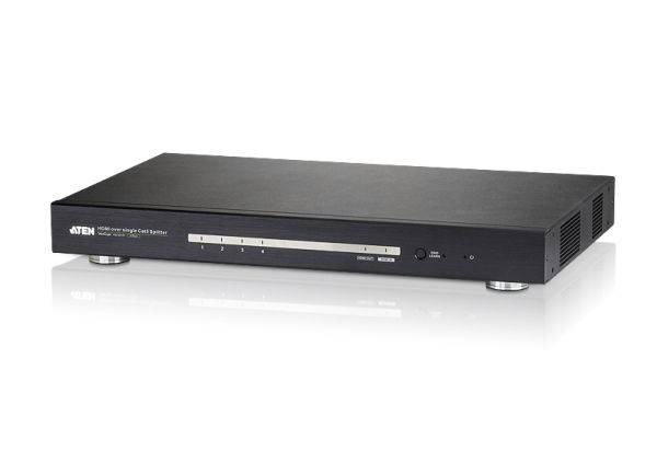 The ATEN VS1814T 4-port HDMI over single Cat 5 Splitter provides a fast and efficient way of switching digital high definition video from one input source to 4 displays located up to 100m away. It implements HDBaseT extension technology to connect the VS1814T to receiver units over one single Cat 5e cable in order to transmit rich HDMI multimedia content in real time.