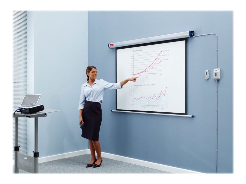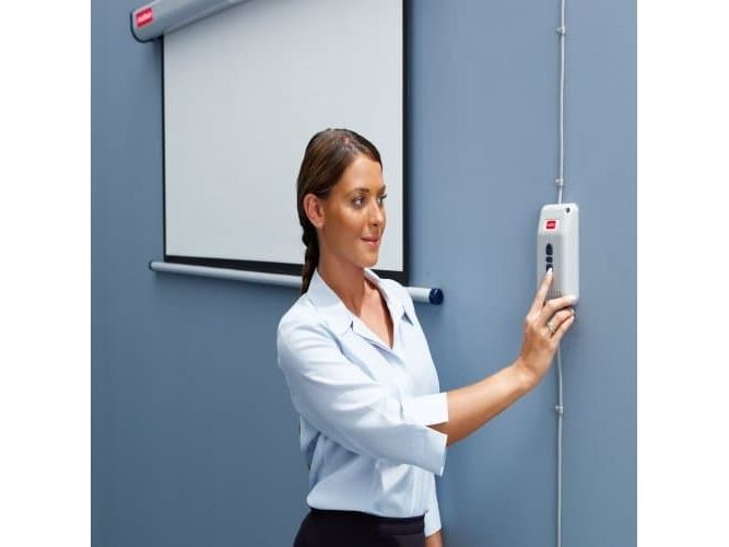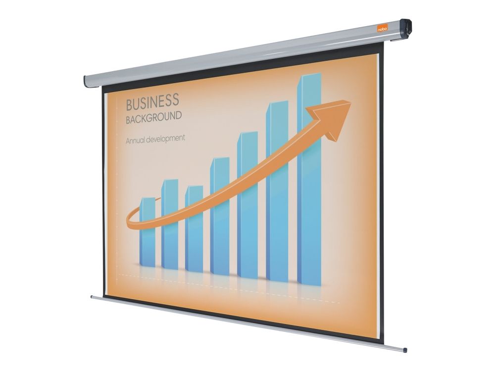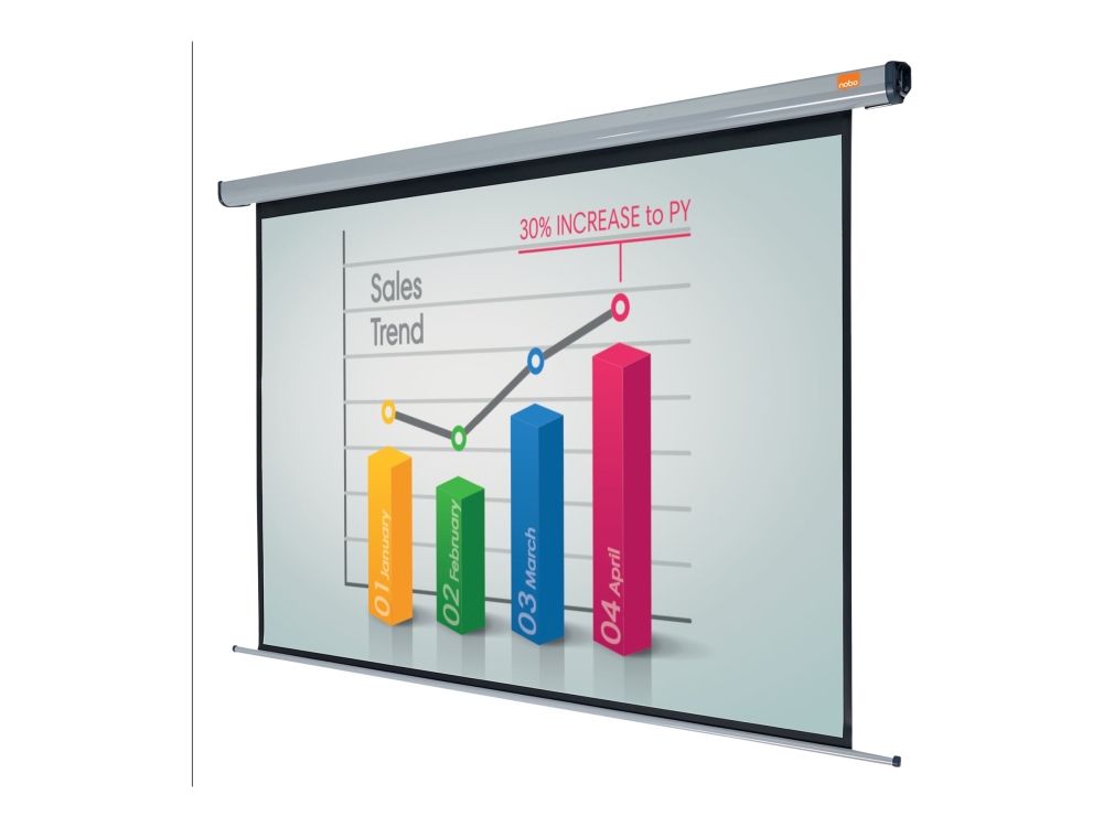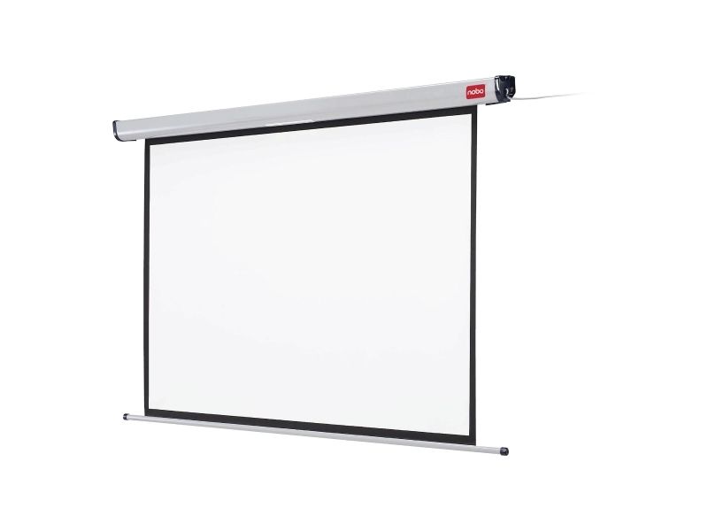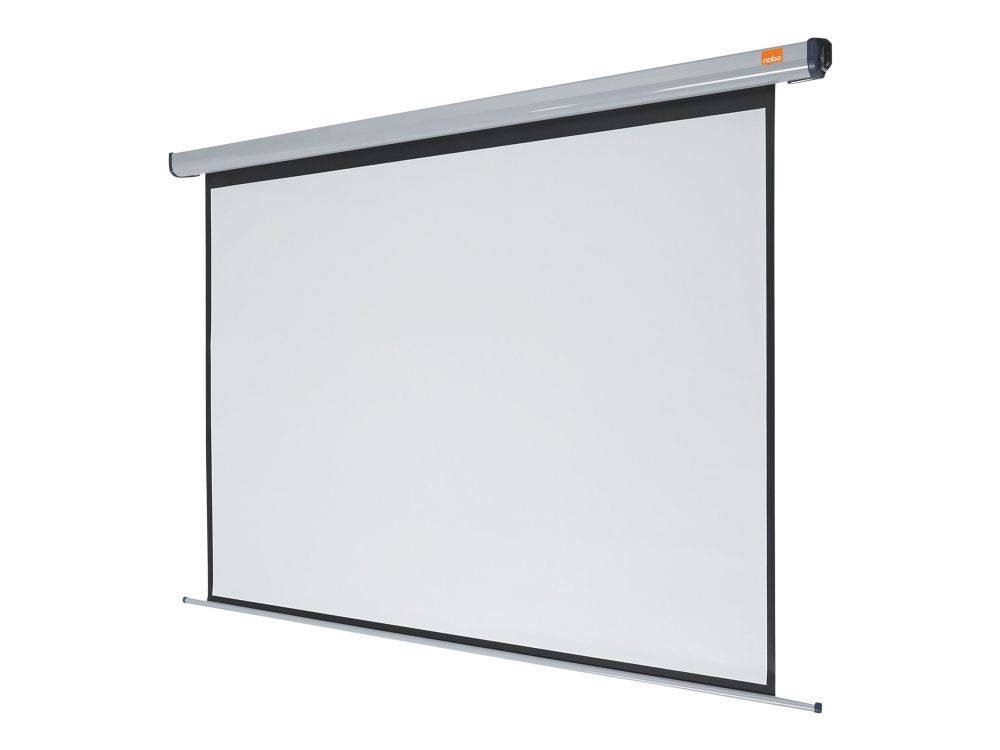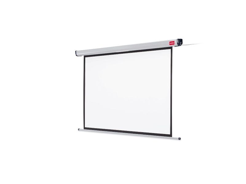 Nobo Electric Screen med integrerad Plug n Play-teknik innebär att skärmen ansluts till ett vanligt eluttag. Enkel montering i vägg eller tak. Widescreen 4:3-format, inkluderar RF-fjärrkontroll och väggmonterbar strömbrytare. Ultratyst, smidig motordrift.