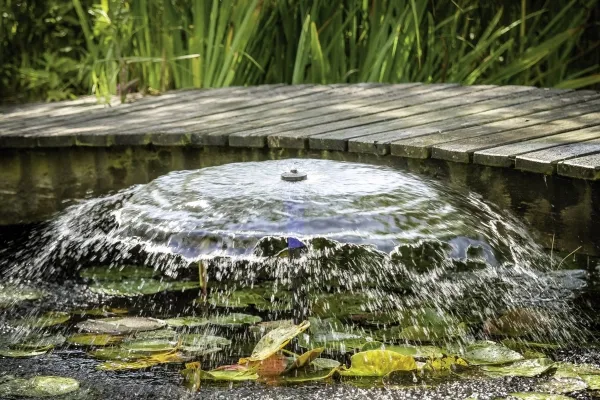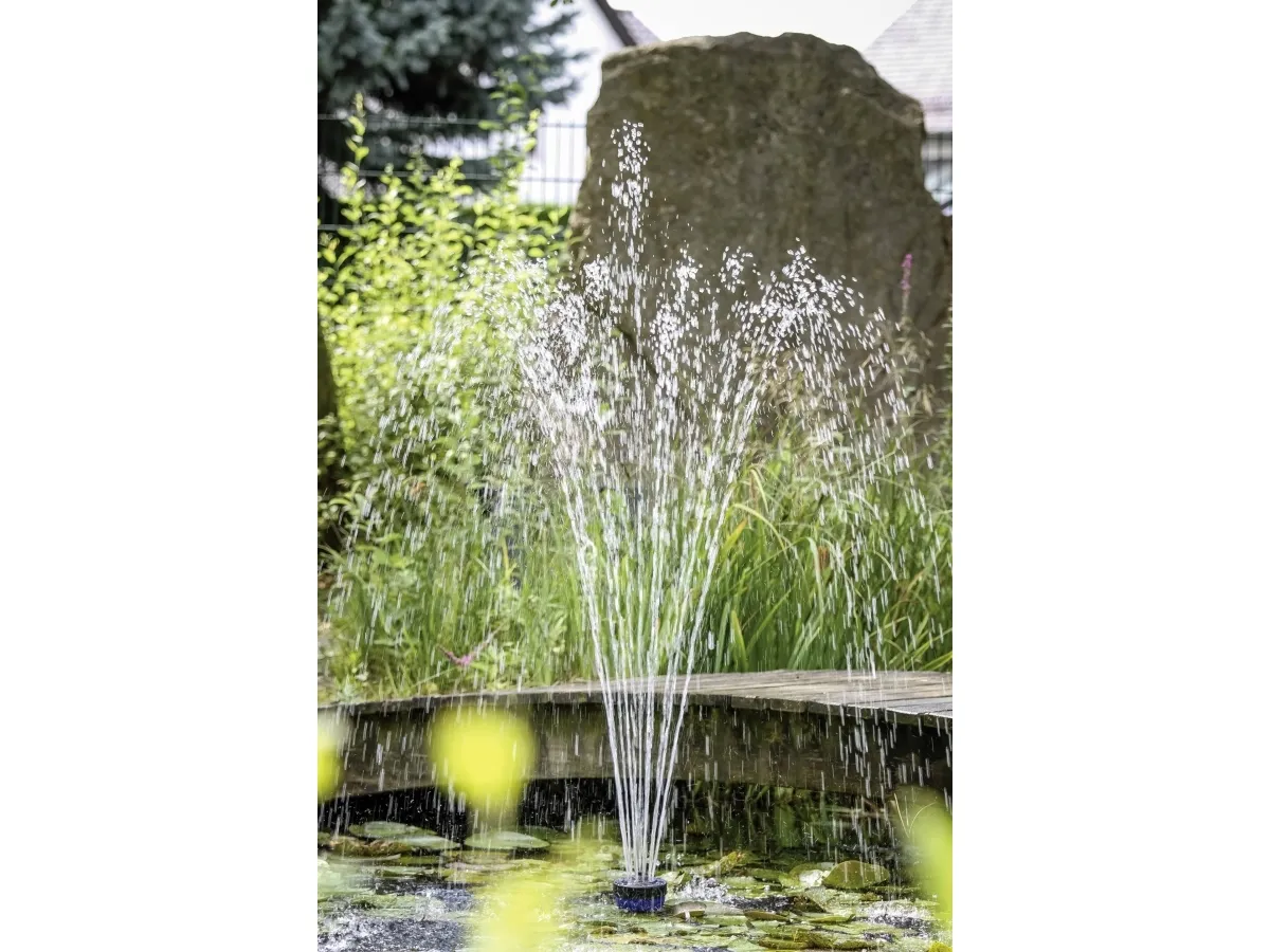 3 fontäntillbehör Pumphuvud i rostfritt stål av hög kvalitet. 3 vattenmönster (skumspray och 2 fontäner). Teleskopisk förlängning med flödeskontroll - Effekt: 120 W - Kabellängd: 10 m