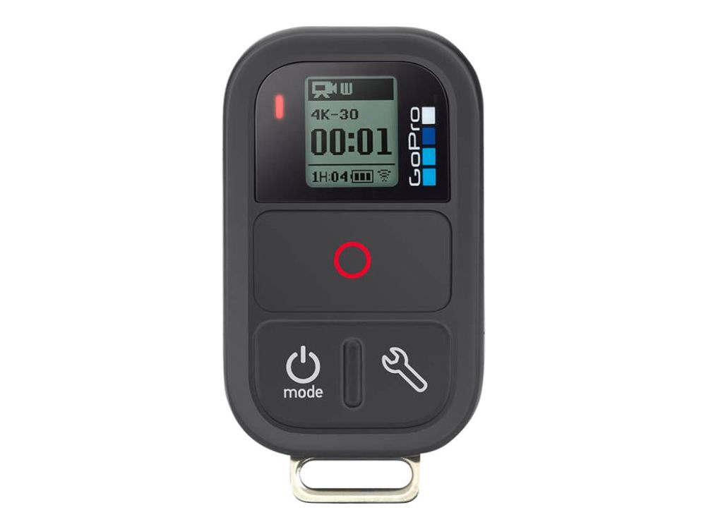 Control your GoPro remotely from distances of up to 600ft (180m) with this wearable, waterproof remote. Perfect for gear-mounted shots, you can power the camera on/off, adjust settings, start/stop recording and capture photos. You can also add HiLight Tags to mark key moments while recording for easy playback, editing and sharing, or access the Settings/Tag button to quickly change settings. Smart Remote enables control of up to 50 cameras at a time and features 40% increased battery capacity compared to the Wi-Fi Remote. Mountable and waterproof to 33ft (10m). Includes a key ring and wrist strap for wearing the remote or attaching it to your gear.