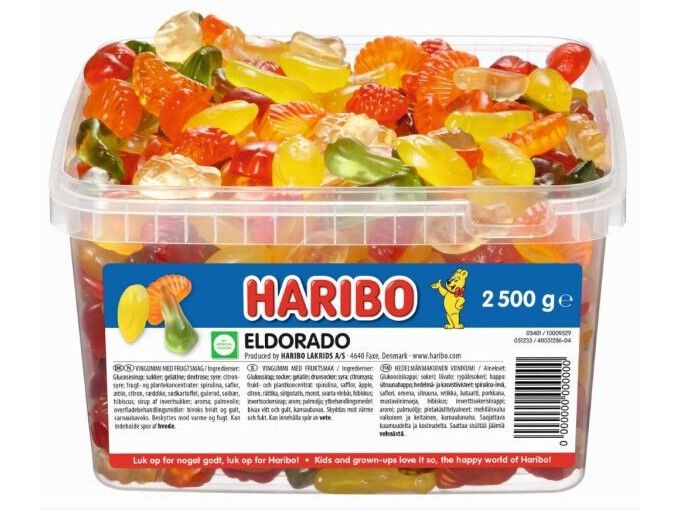 Haribo Eldorado vingummi byder på en spændende blanding af klassiske vingummistykker med frugtige og lakridsagtige smagsoplevelser. Perfekt til dig, der elsker variation og den velkendte Haribo-kvalitet. En skøn snack til en sød pause i hverdagen, hjemme eller på kontoret i virksomheden.