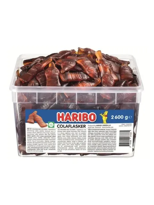 Haribo Cola Flasker 2,6 kg i plastbøtte