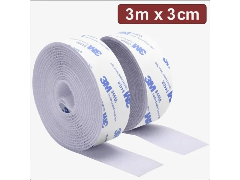 Quadrios 24CA324 Självhäftande tejp med kardborreband L x B 3 m 3 cm Vit 3 (24CA324)