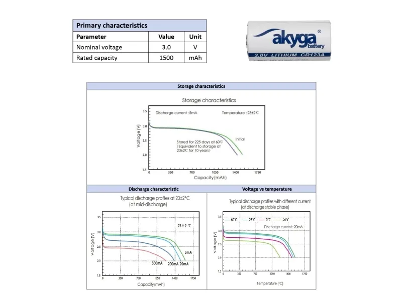 Akyga - Batteri - 3V CR123A - Li/MnO2 - 1500 mAh