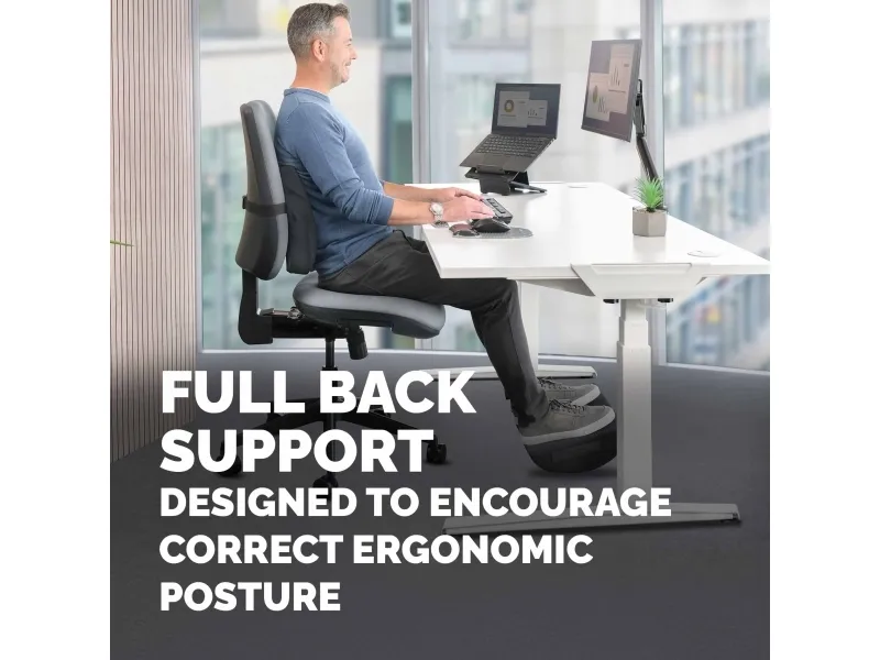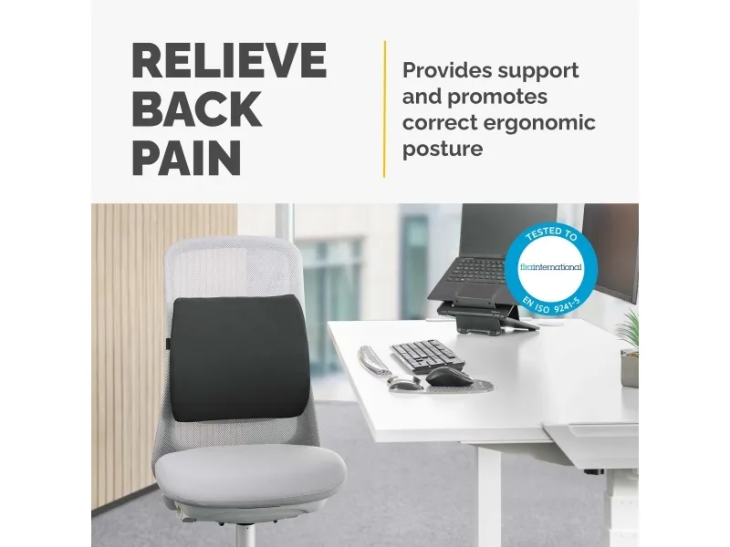 The Fellowes Breyta back support is designed to enhance comfort during long hours of gaming or office work. It features an adjustable strap for a customized fit, ensuring that users can achieve optimal lumbar support. Its lightweight and portable design, complemented by a carrying handle, allows for easy transportation between home and office. Crafted from durable fabric and foam materials, this back support provides comfort and durability to withstand daily use. Ideal for gamers and professionals alike, the Fellowes Breyta back support promotes healthy posture and reduces strain on the back, making it an essential accessory for any chair.