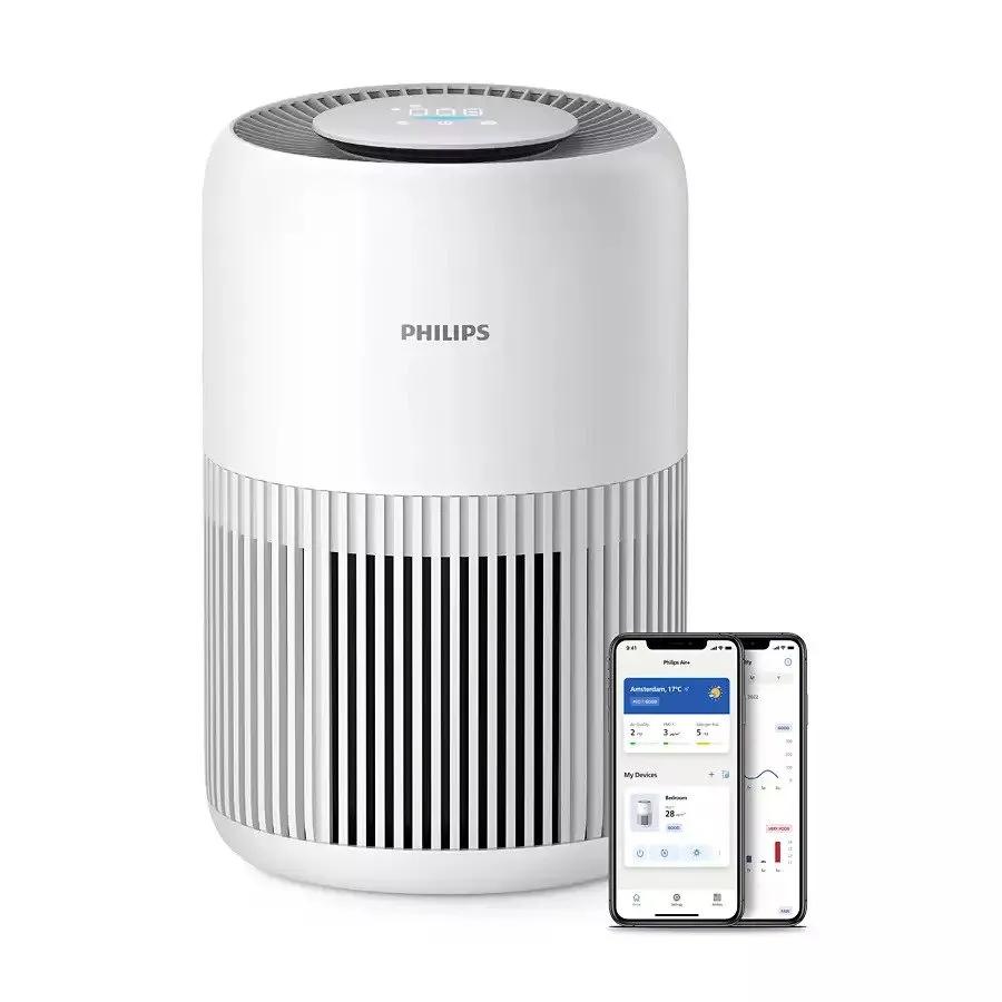 CADR (partiklar): 250 m³/h Max. rumsstorlek: upp till 65 m² Filtrering: 3-lagers (förfilter + HEPA NanoProtect + aktivt kol) / 3-i-1 HEPA-filter ingår Partikelfiltrering: 99,97 % vid 0,003 µm Sensor: PM2.5 (AeraSense) Ljudnivå: 20,5–49 dB(A) Effekt: max. 23 W (standby <2 W) App och smart: Philips Air+ (Wi-Fi 2,4 GHz) + röststyrning (Google/Alexa) Barnsäkert lås: Ja Filterintervall (rekommenderas): ca 1 år Mått (H×B×D): 36,4 × 24,0 × 23,8 cm Vikt: 2,7 kg