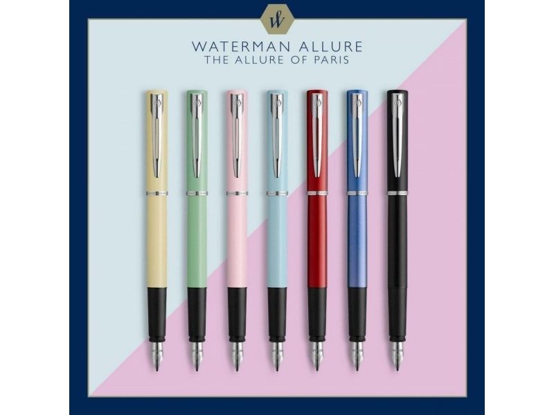 Waterman 2105222, Blå, Påfyllning med bläckpatronssystem, Blå, Krom, Rund spets, Ambidextrous