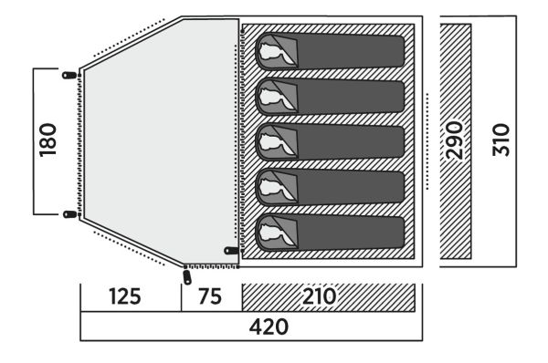 Easy Camp Kinn 5 kupoltält (olivgrön, med tunnelutbyggnad, modell 2025)
