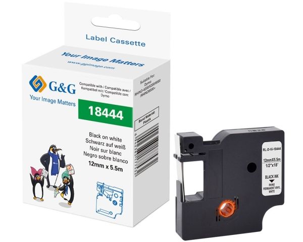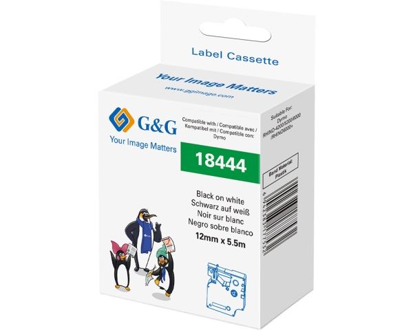 G&G 21703, Svart på vitt, Kontinuerlig etikett, Svart, Vinyl, DYMO, 1,2 cm