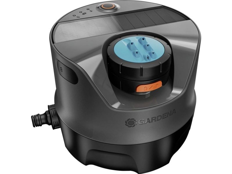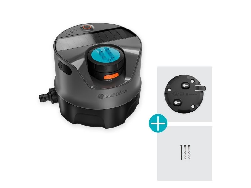 Gardena AquaPrecise ovanjordiskt bevattningssystem (grå/turkos, med monteringsplatta och slanganslutning)