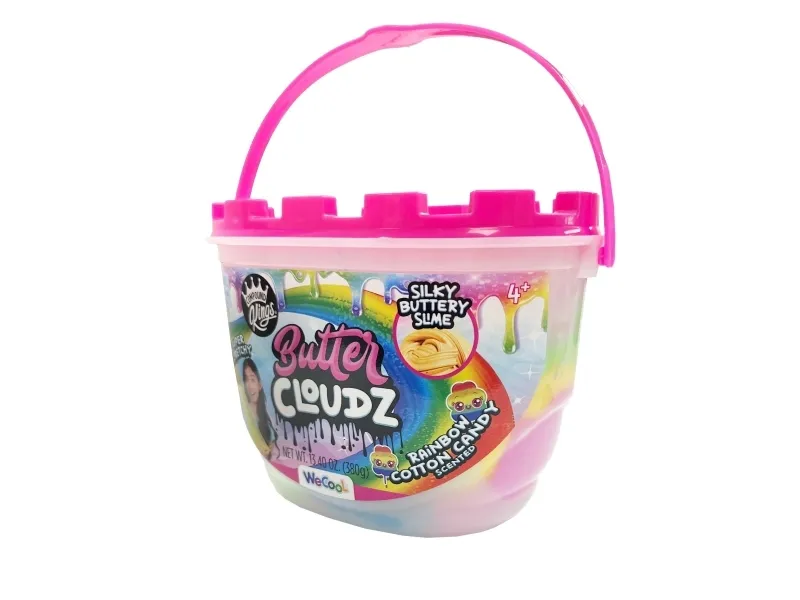 Rainbow Butter Cloudz är ett superelastiskt och silkeslent slem som känns som riktigt smör. Butter Cloudz-hinken innehåller 5 olika härliga klara färger som du kan kombinera och sno ihop till färgglada figurer.