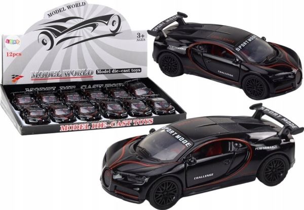 LeanToys sportbil 1:32 figur med spoiler i metall, svart