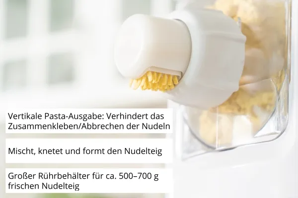 Unold NUDELMASCHINE Nora 68820. Type: Electric pasta machine, Best uses: Bucatini, Fettuccine, Linguine, Macaroni, Ravioli, Spaghetti, Thick spaghetti, Material: Acrylonitrile butadiene styrene (ABS). Power: 260 W, AC input voltage: 220 V, AC input frequency: 50 Hz. Width: 190 mm, Depth: 335 mm, Height: 250 mm. Plastic packaging weight: 166 g, Paper packaging weight: 416 g, Other packaging weight: 0.5 g. Products per shipping (inner) case: 1 pc(s), Shipping (inner) case length: 11 cm, Shipping (inner) case width: 26.8 cm